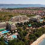 Surrounded by a lush garden and greenery, the 4-star Sol Nessebar Bay All Inclusive hotel offers a seasonal outdoor pool and a gym facility. This beachfront hotel features 283 rooms in a beach area, approximately a 10-minute drive from culture-oriented attractions such as Archaeological Museum.
