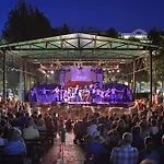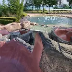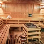 The comfortable rooms include a balcony and a terrace, furnished with a fireplace, and some of them face the park. They are fitted with twin beds, lockers. A separate toilet and a shower, along with hair dryers and towels, are included in the private bathrooms.